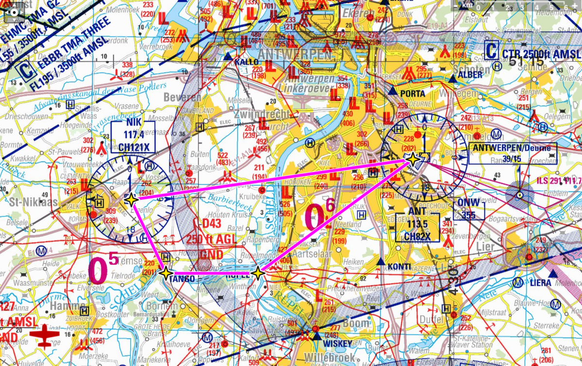 We stijgen op in Deurne, de Internationale Luchthaven Antwerpen, via Hoboken en Kruibeke naar Sint-Niklaas. Dan langs Temse volgen we de Schelde tot Rupelmonde en gaan we zo terug naar de luchthaven van Antwerpen.