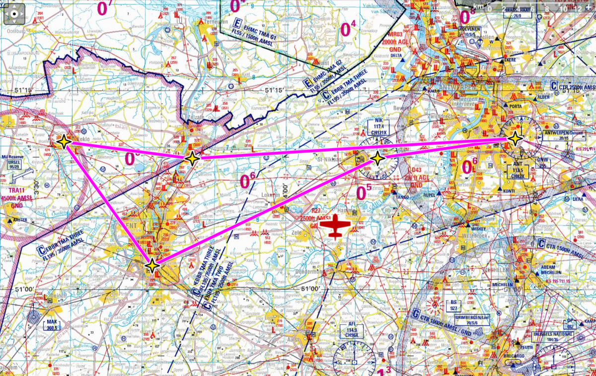 Via Sint-Niklaas gaan we het gecontroleerde luchtruim van Antwerpen binnen om te landen.