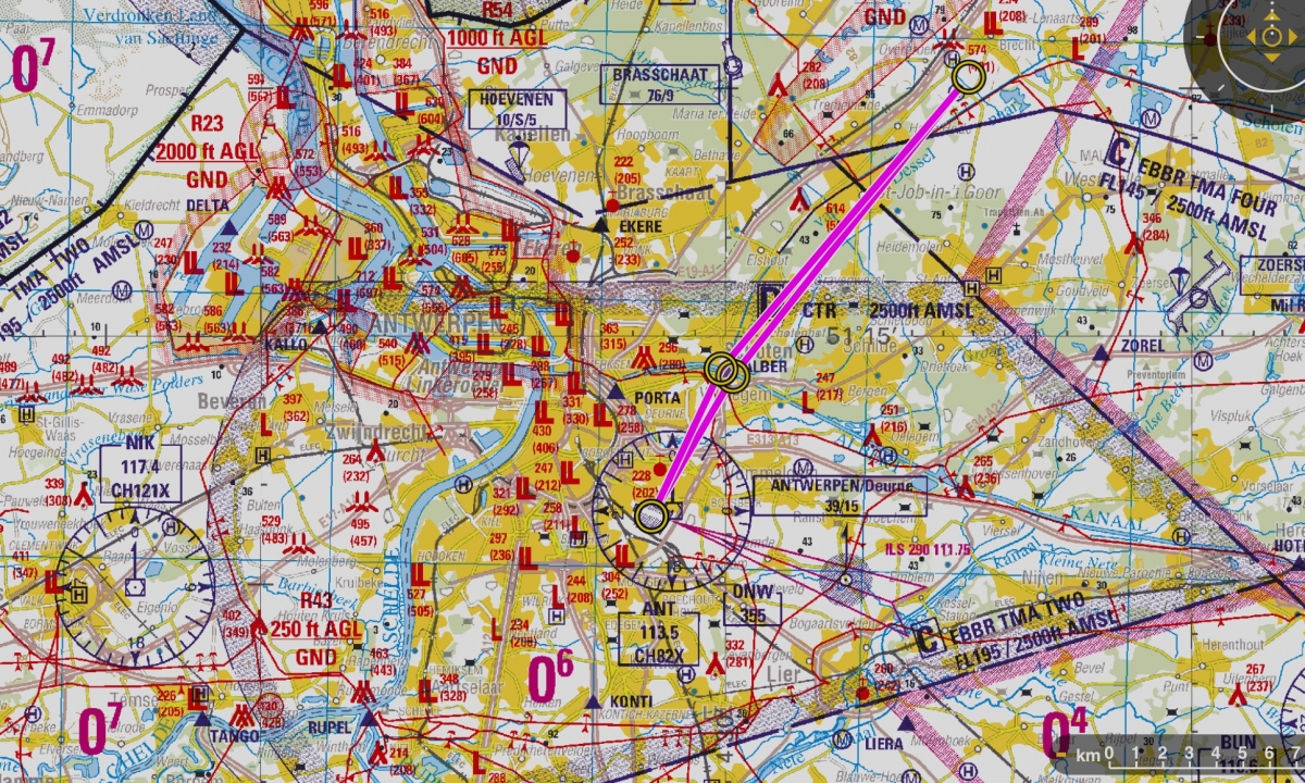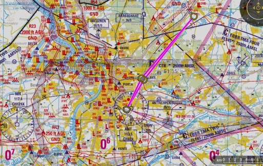 We stijgen op van de Internationale luchthaven Antwerpen en vliegen via Antwerpen centrum, langs de haven naar Kallo en verder door richting Kieldrecht.
